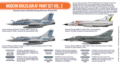 • HTK-C031 – Gunship Grey – FS36118, used for upper surfaces of Brazilian AF Mirage IIIEBR/DBR (locally designated F-103E/D) from 1979 till 2005